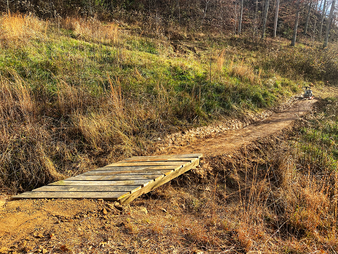 Bike family trail build on the family farm. This was a fun small hand built trail project that needed to provide trails close to the home a 7 year old could do as well as alternate lines for skills progression and a pretty RAD Mom and Dad. It was important to stay off the higher terrain and close to the house. I have a feeling we will be going back someday for expansion. One lucky kid is already looking forward to racing NICA.